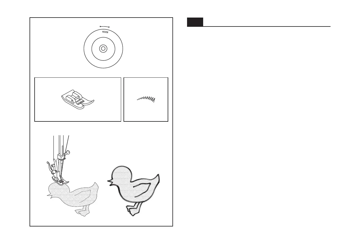 edge if the applique. Lower presser foot.