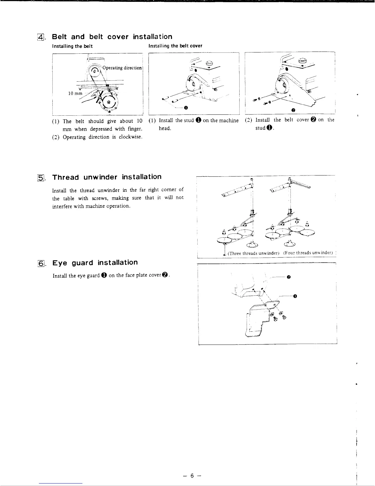 Singer 831U - Belt and Belt Cover Installation; Thread Unwinder Installation; Eye Guard Installation