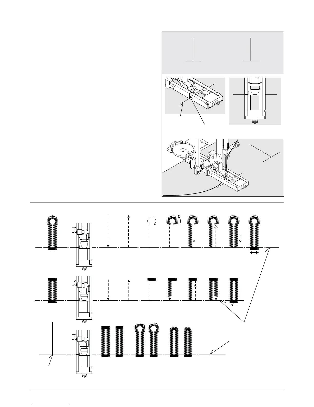 6. Place the fabric under the foot. Pull out the bobbin thread