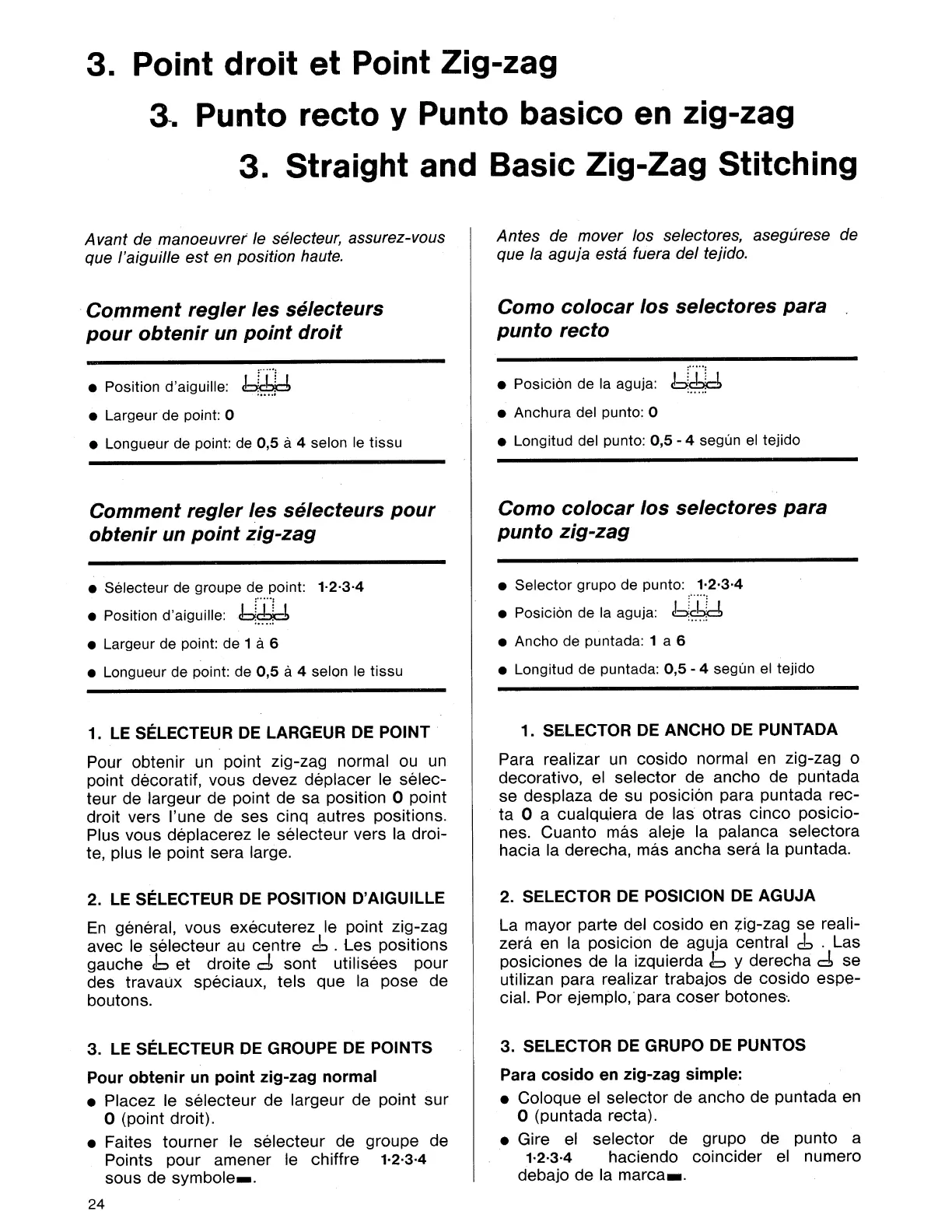 Singer 8610 - Straight and Basic Zig-Zag Stitching; Setting Selectors for Straight Stitch; Setting Selectors for Zig-Zag Stitch; Stitch Width Selector
