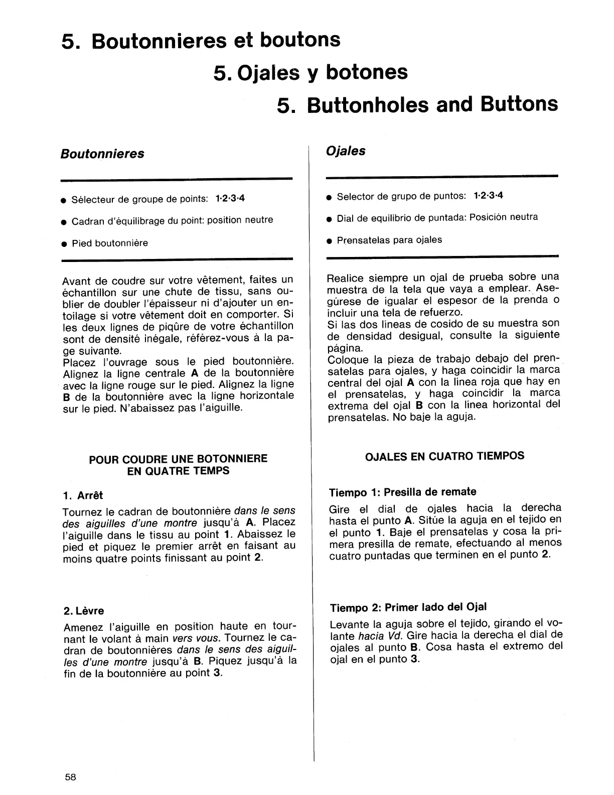 Singer 8610 - Buttonholes and Buttons; Buttonholes; Four-Step Buttonholing