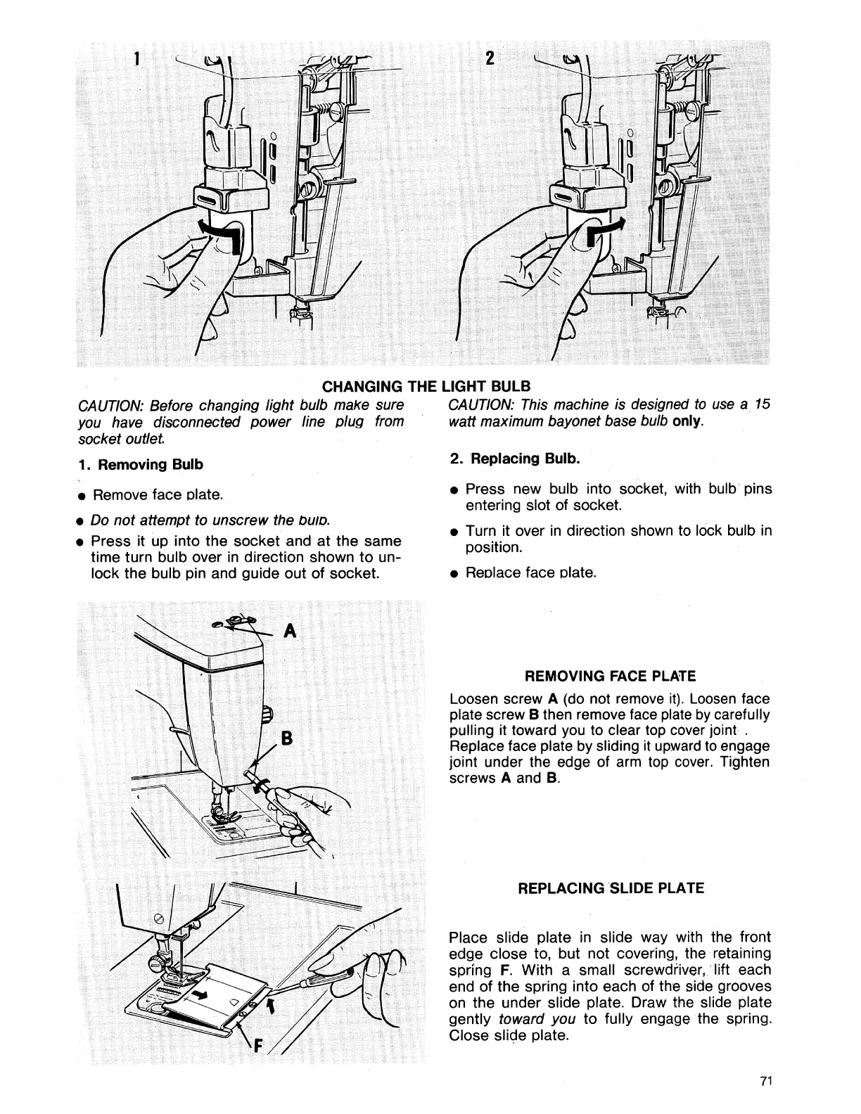 Singer 8610 - Changing the Light Bulb; Removing Face Plate; Replacing Slide Plate; Removing Bulb