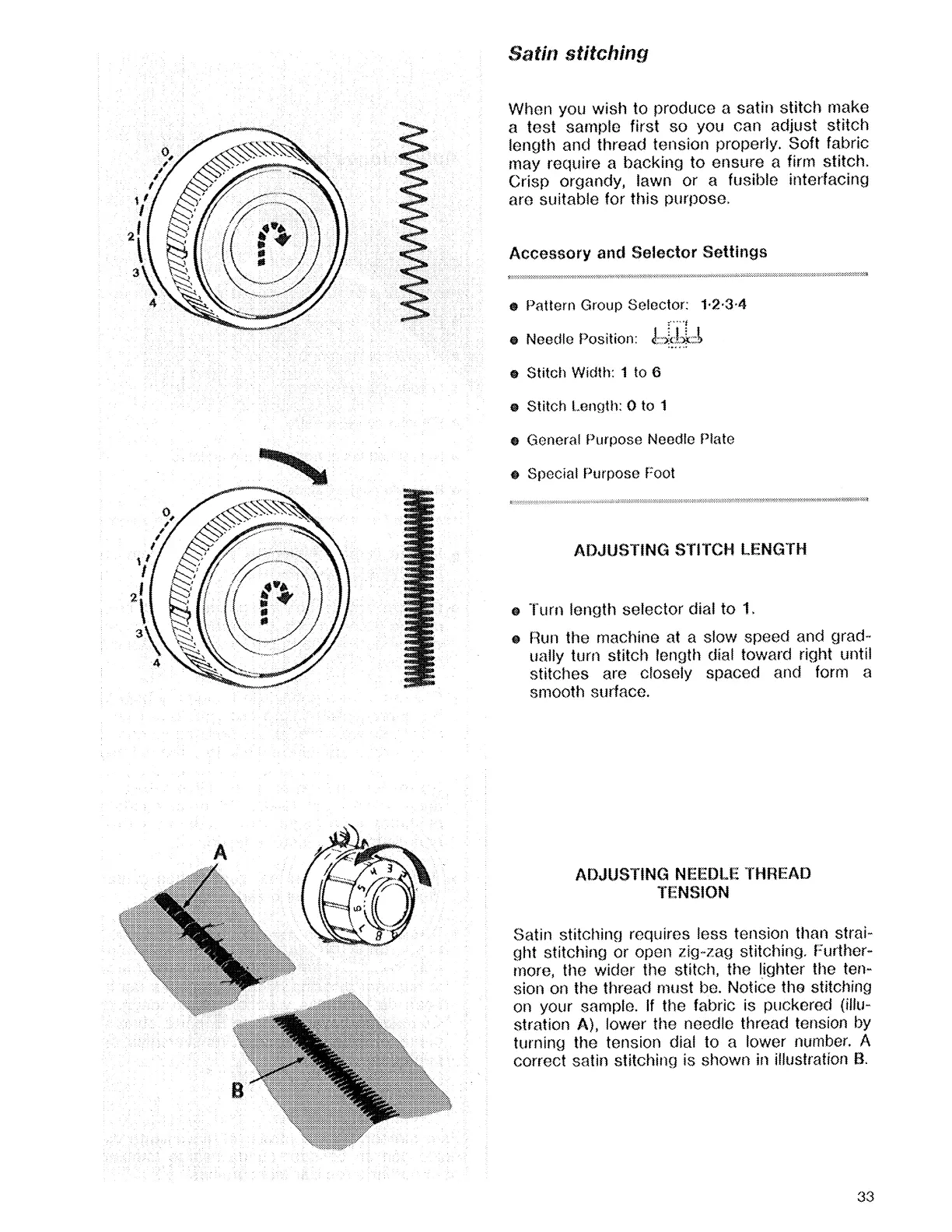 Singer 8614 - Sating Stitching; Accessory and Selector Settings