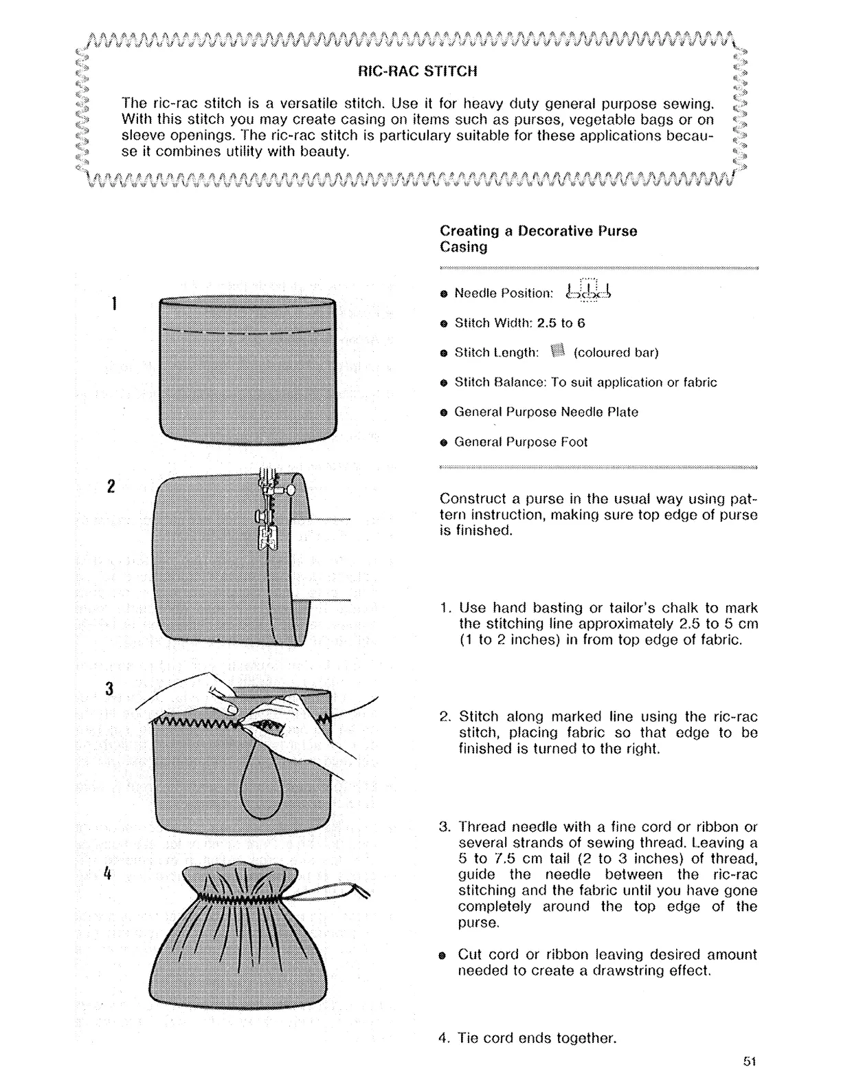 Singer 8614 - Ric-Rac Stitch; Creating a Decorative Purse Casing