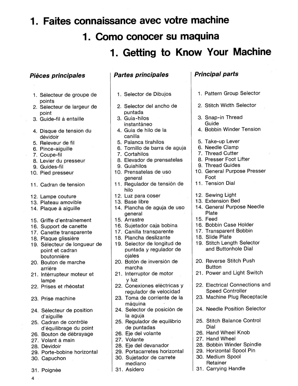 Singer 8614 - Getting to Know Your Machine; Principal Parts