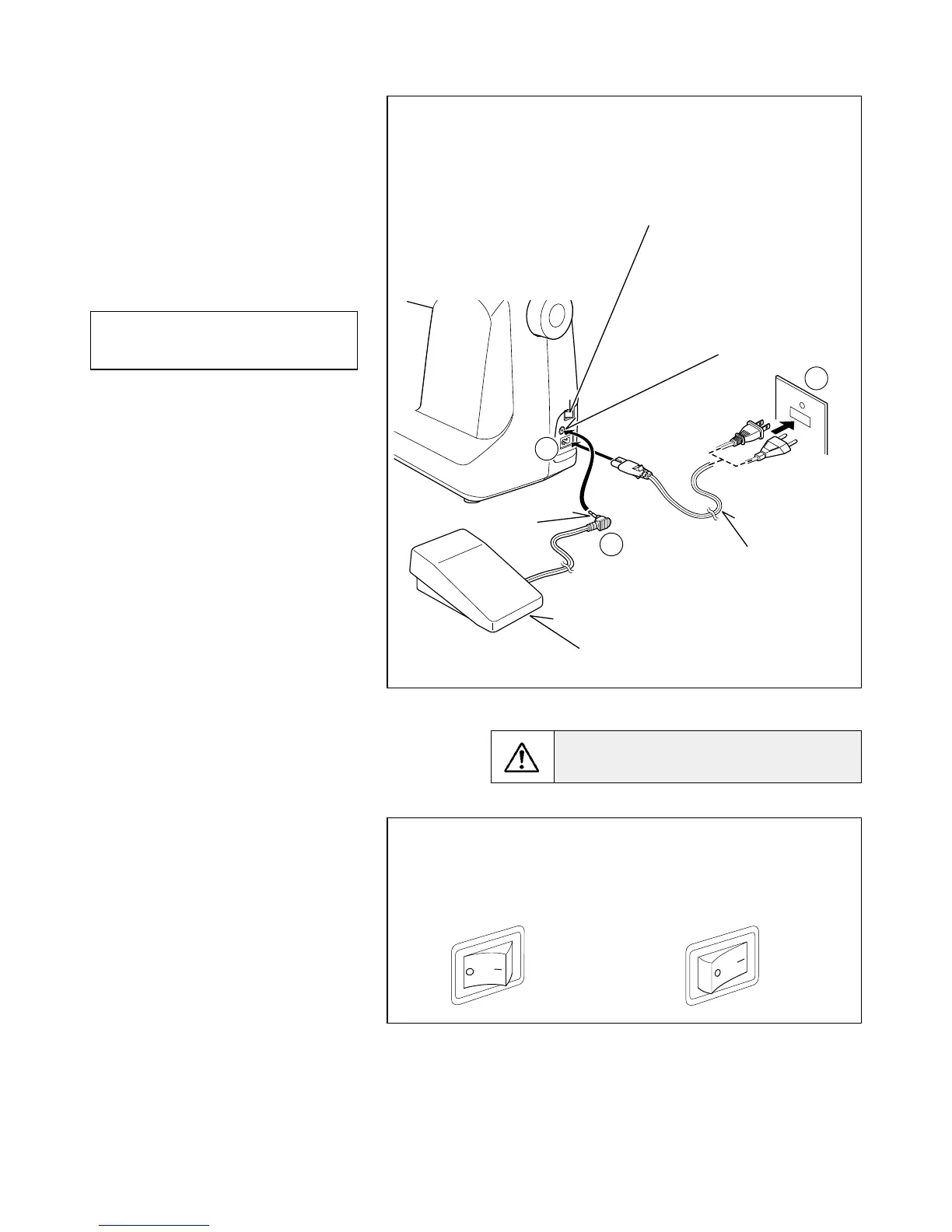 Connect the foot control plug (3) into the