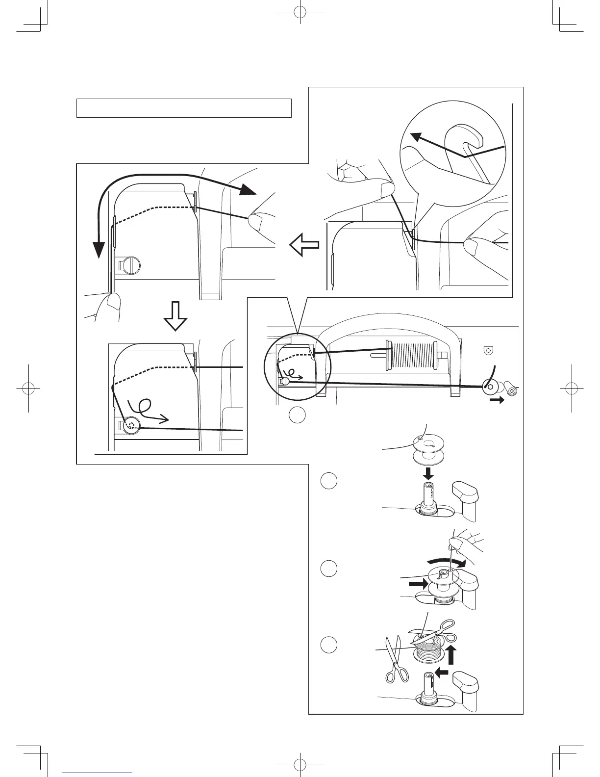 4. Start machine. After the bobbin has begun to ll, stop to cut