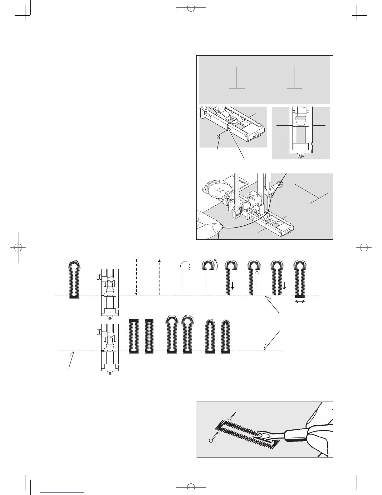 6. Place the fabric under the foot. Pull out the bobbin thread