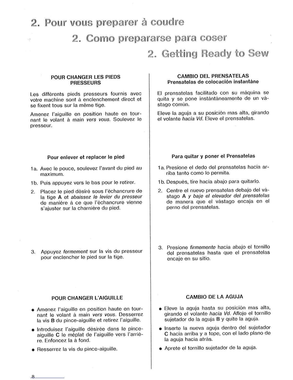 Singer 8834 - Getting Ready to Sew; Changing Presser Feet; Changing the Needle