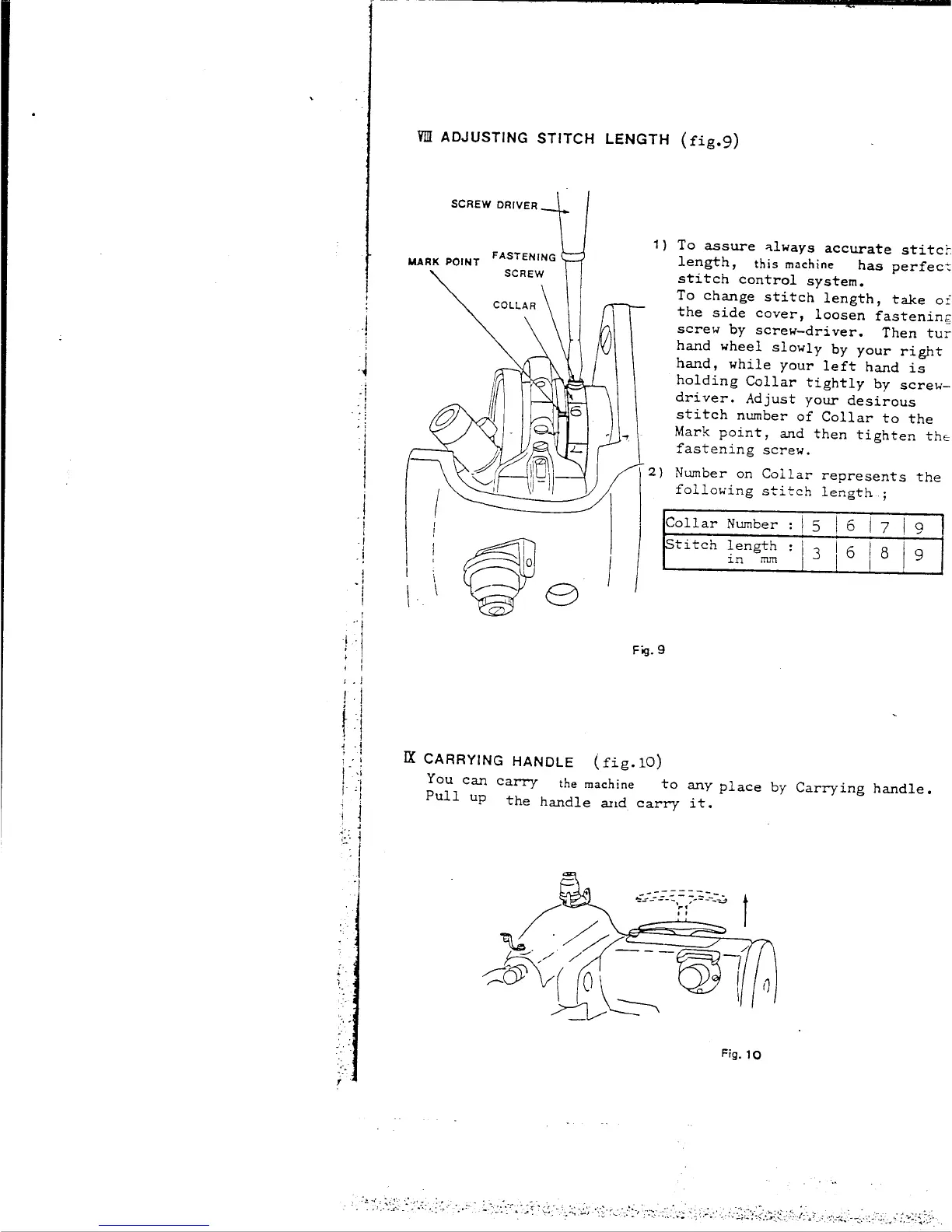 Singer 8P - Adjusting Stitch Length; Carrying Handle