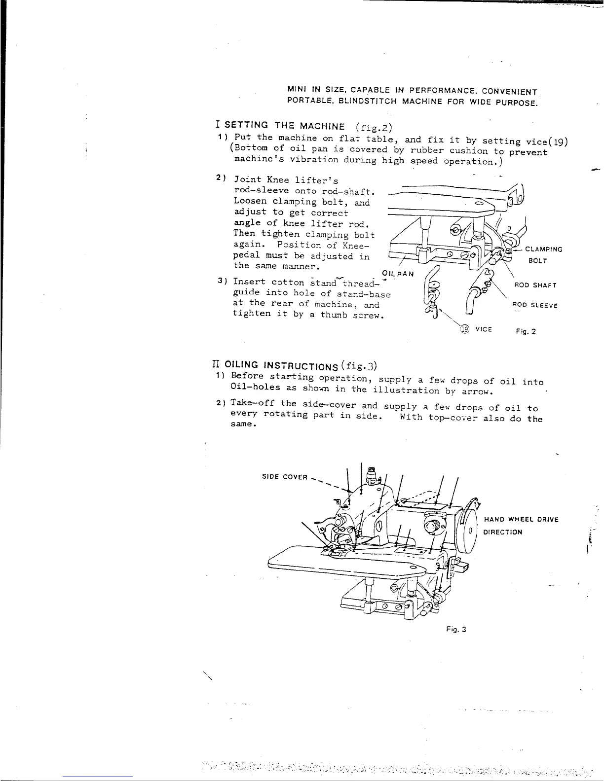 Singer 8P - Setting the Machine; Oiling Instructions