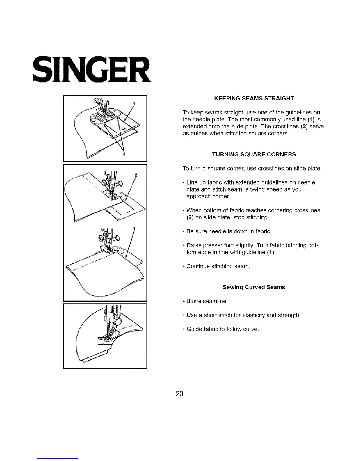 • Raise presser foot slightly. Turn fabric bringing bot-