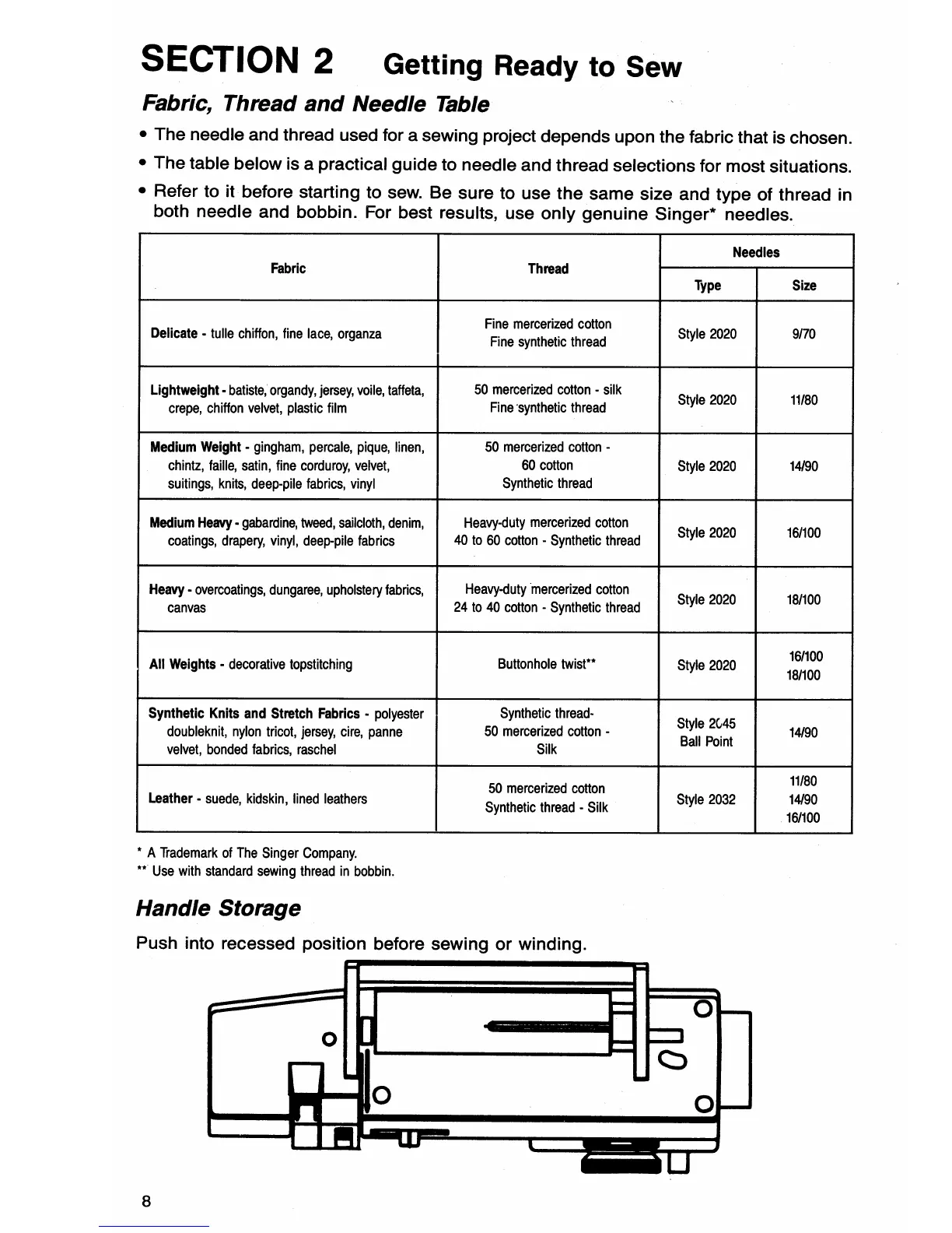 Singer 9117 - Getting Ready to Sew; Fabric, Thread, and Needle Selection Guide