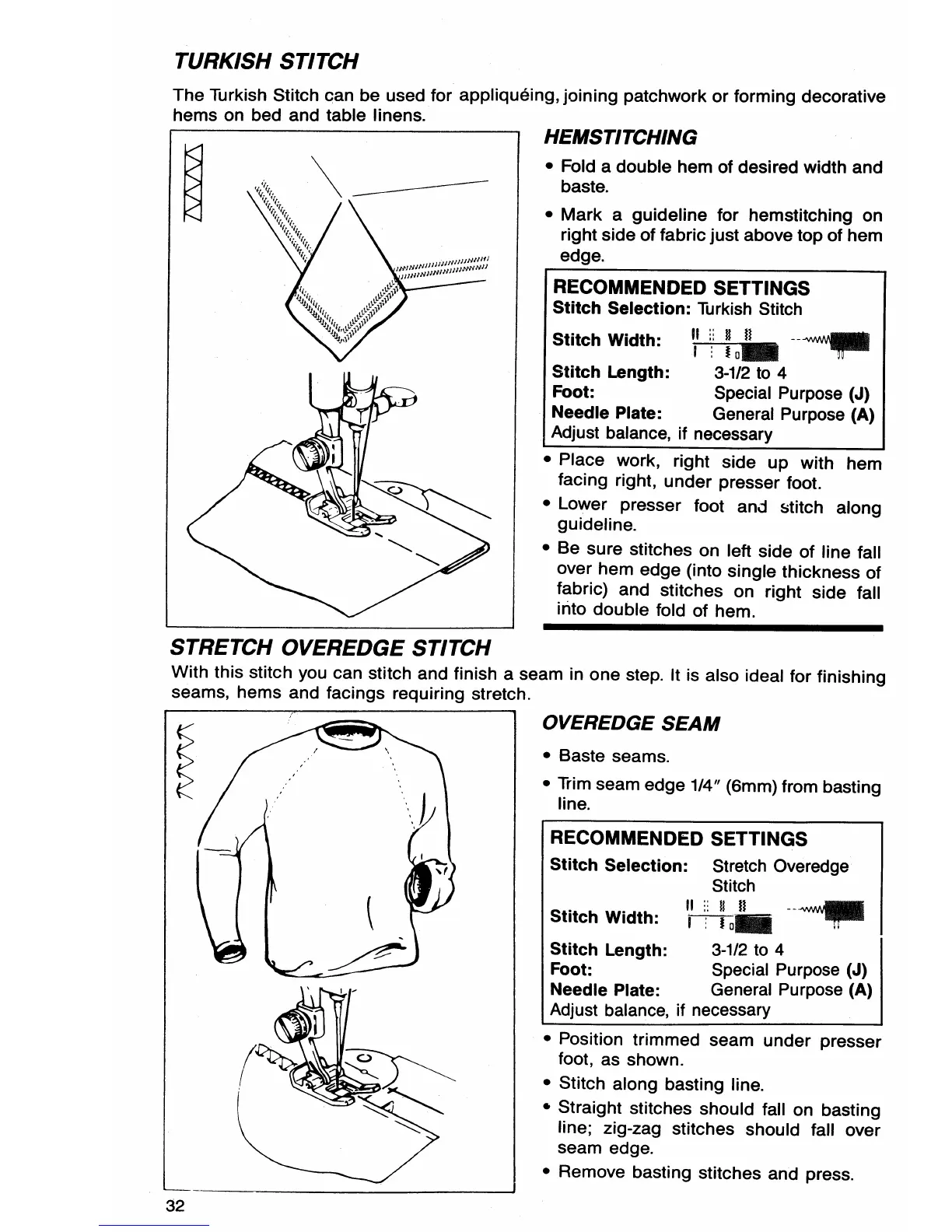 Singer 9117 - Turkish Stitch; Hemstitching; Stretch Overedge Stitch; Overedge Seam
