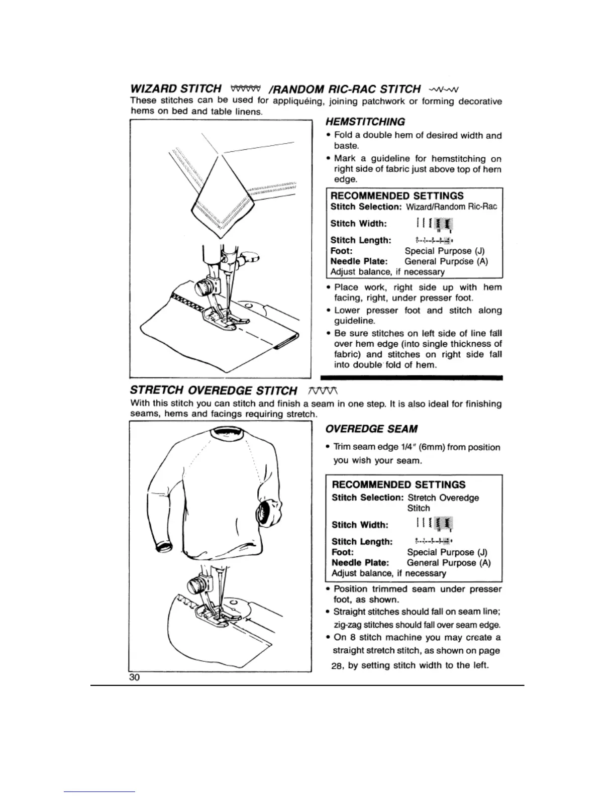 Singer 9133 - Wizard and Random Ric-Rac Stitches; Stretch Overedge Stitch