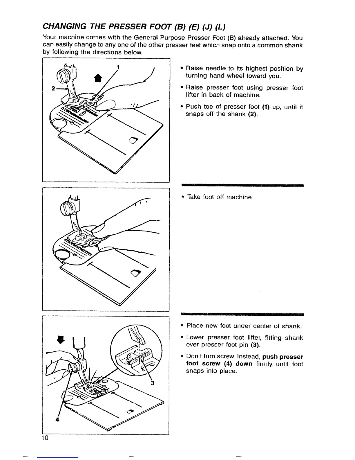CHANGING THE PRESSER FOOT (B) (E) (J) (L)