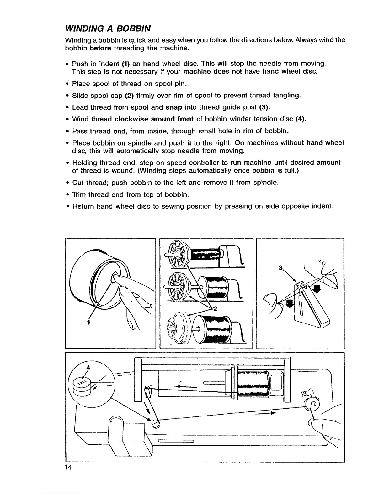 Winding a bobbin is quick and easy when you follow the directions below. Always wind the