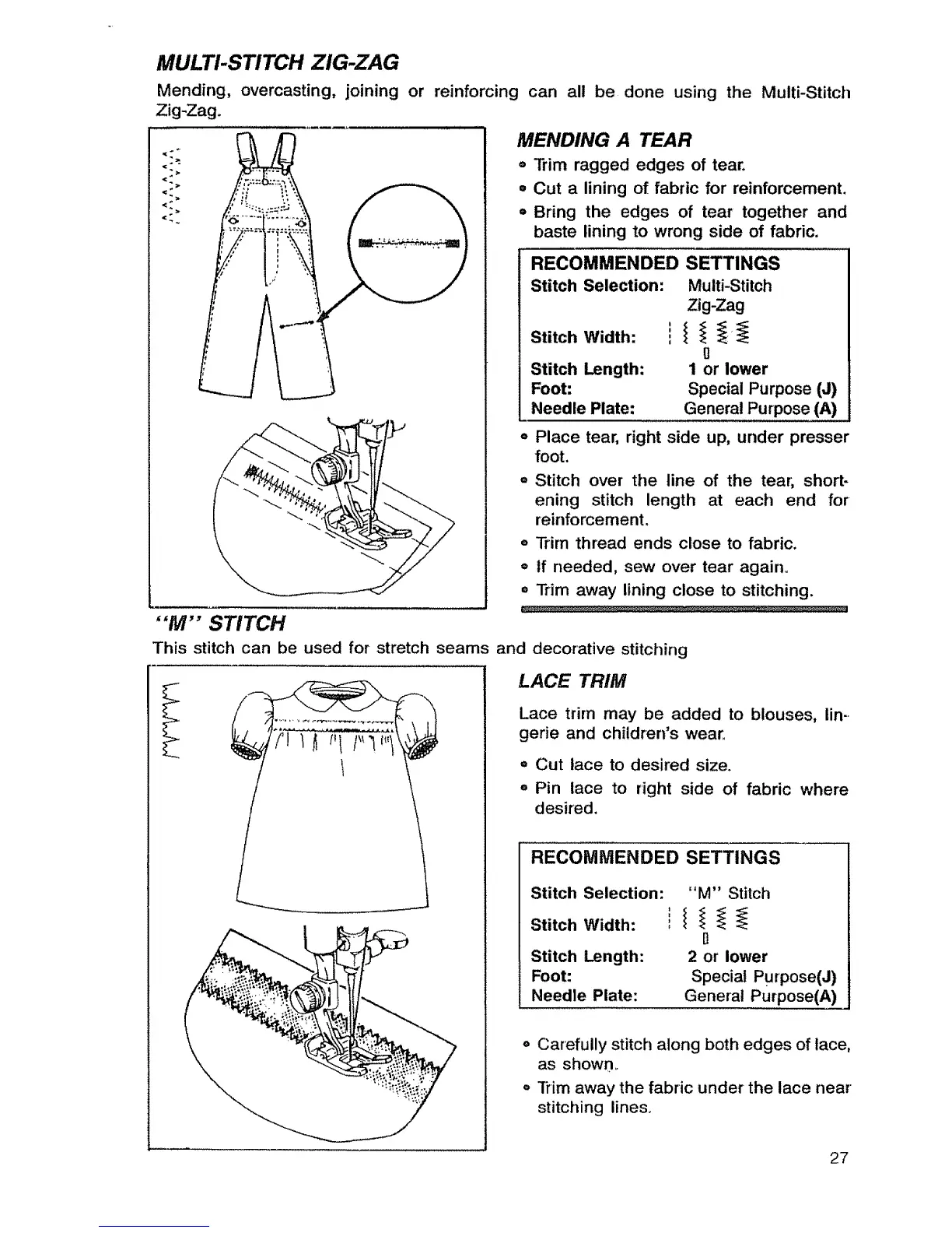 Mending, overcasting, joining or reinforcing can all be done using the Multi-Stitch