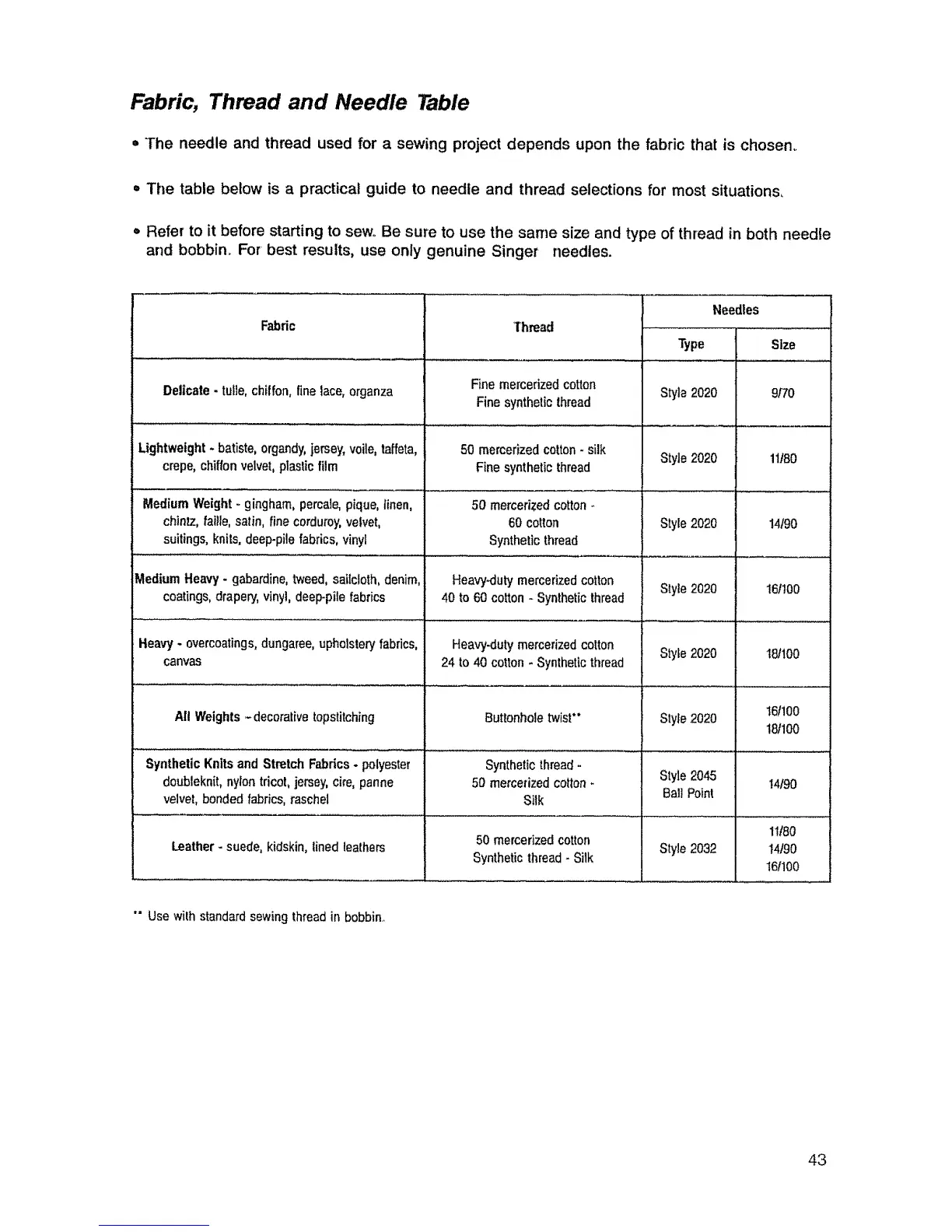 • The needle and thread used for a sewing project depends upon the fabric that is chosen_