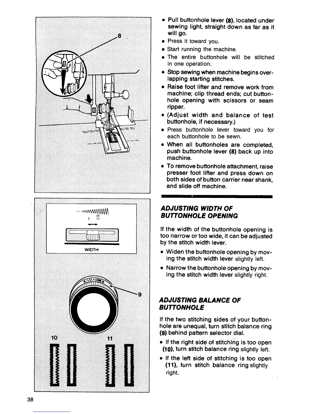 Singer 9143 - Adjusting Buttonhole Width; Adjusting Buttonhole Balance