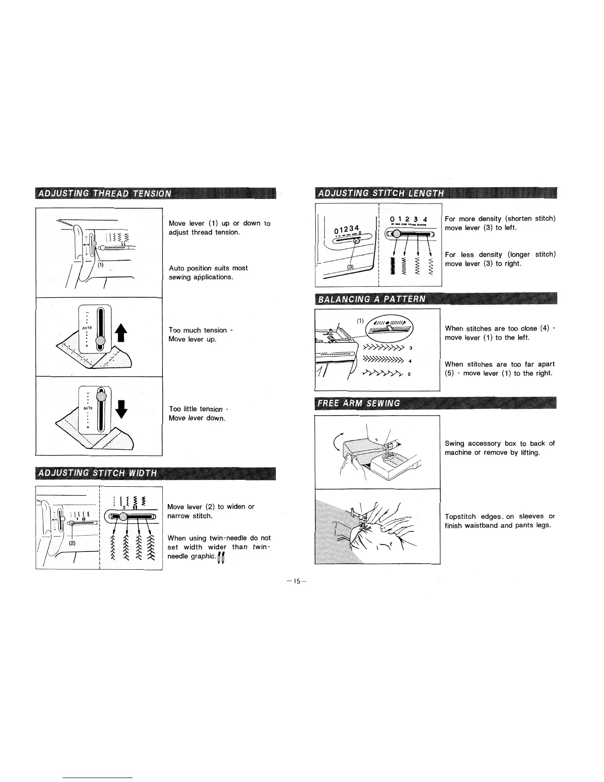 Singer 9217 - ADJUSTING THREAD TENSION; ADJUSTING STITCH WIDTH; ADJUSTING STITCH LENGTH; BALANCING A PATTERN