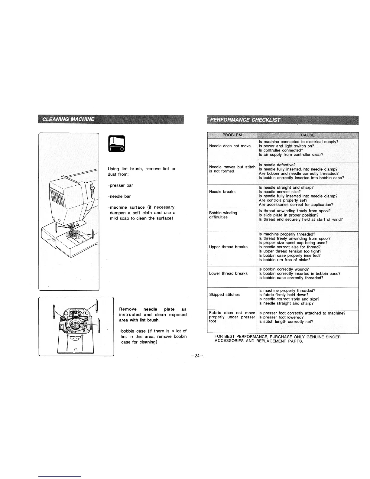 Singer 9224 - Cleaning Machine; Performance Checklist