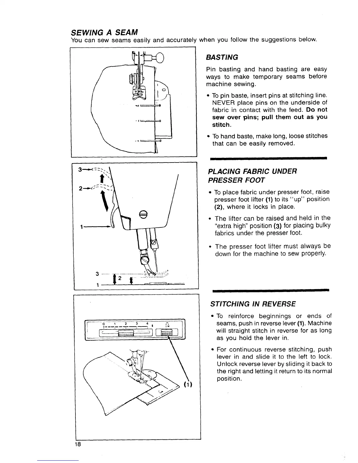 seams, push in reverse lever (1). Machine
