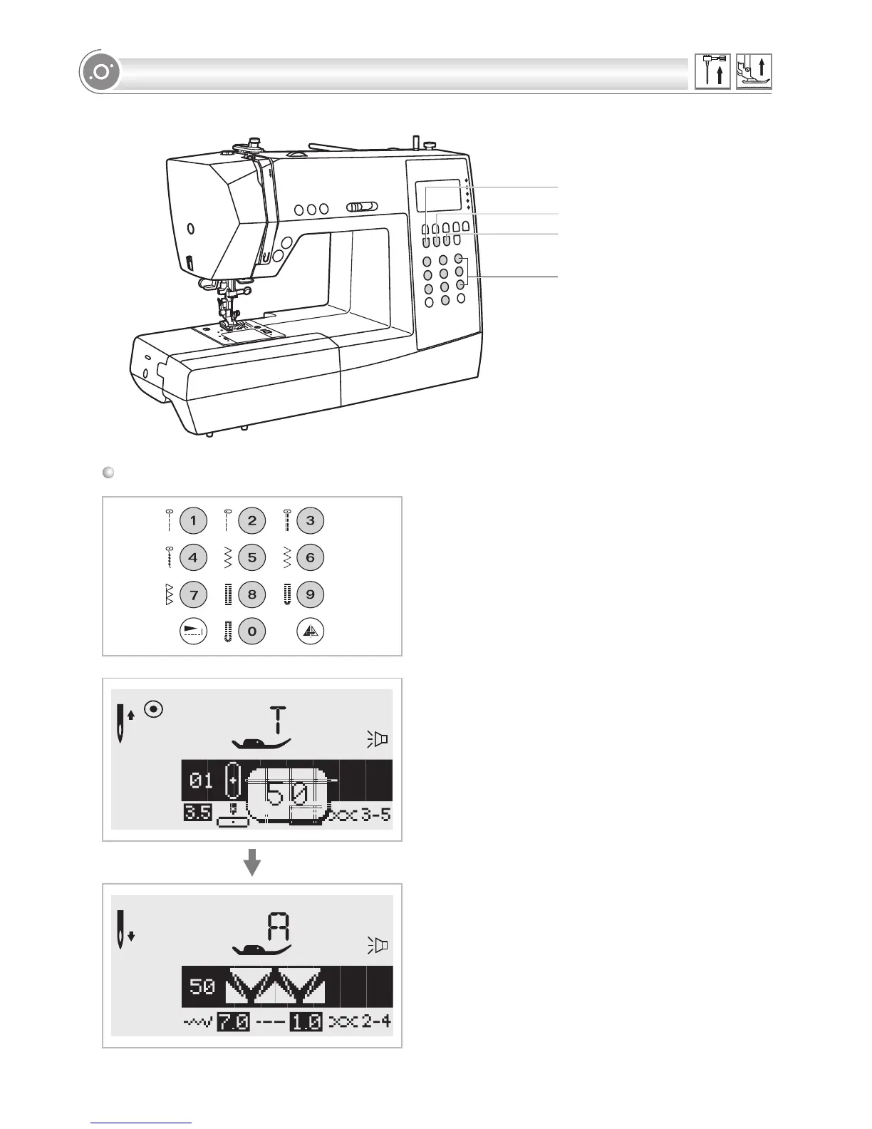 buttons to select stitch patterns.