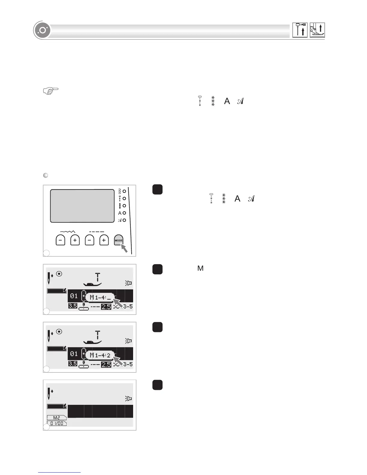 - All the units in the memory can be edited to set its function such as Stitch length, Stitch width,
