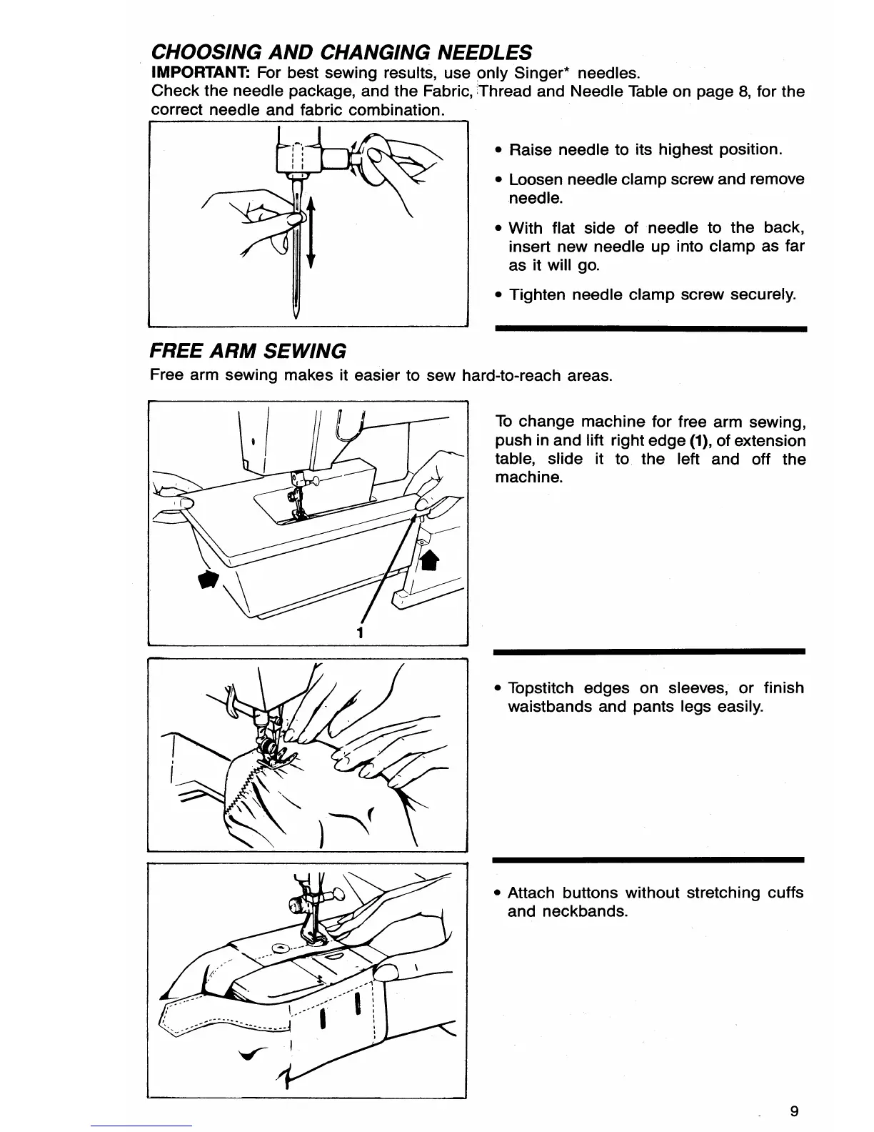 Singer 9417 - Choosing and Changing Needles; Free Arm Sewing