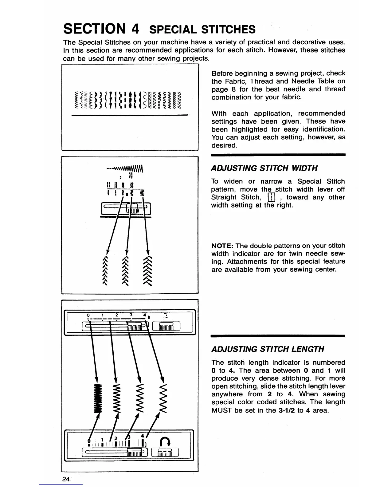 Singer 9417 - Special Stitches; Adjusting Stitch Width; Adjusting Stitch Length (Special Stitches)