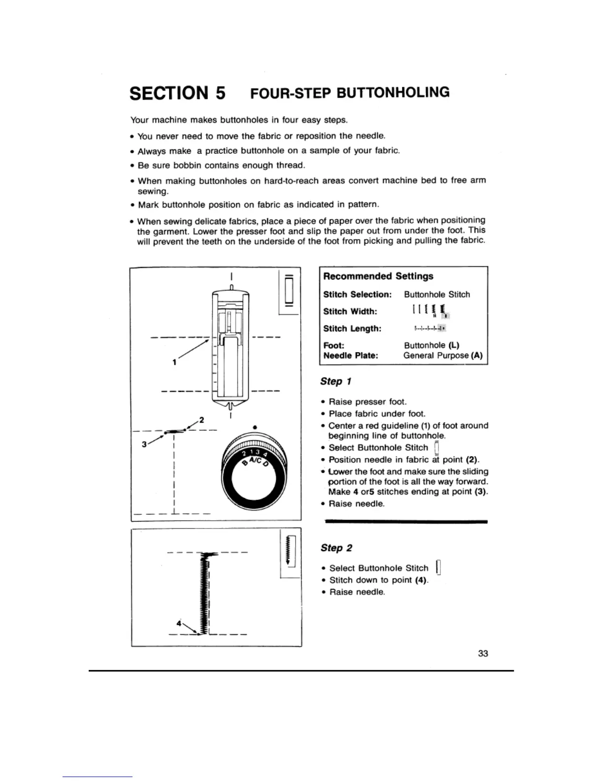 Singer 9432 - Section 5 Four-Step Buttonholing; Step 1