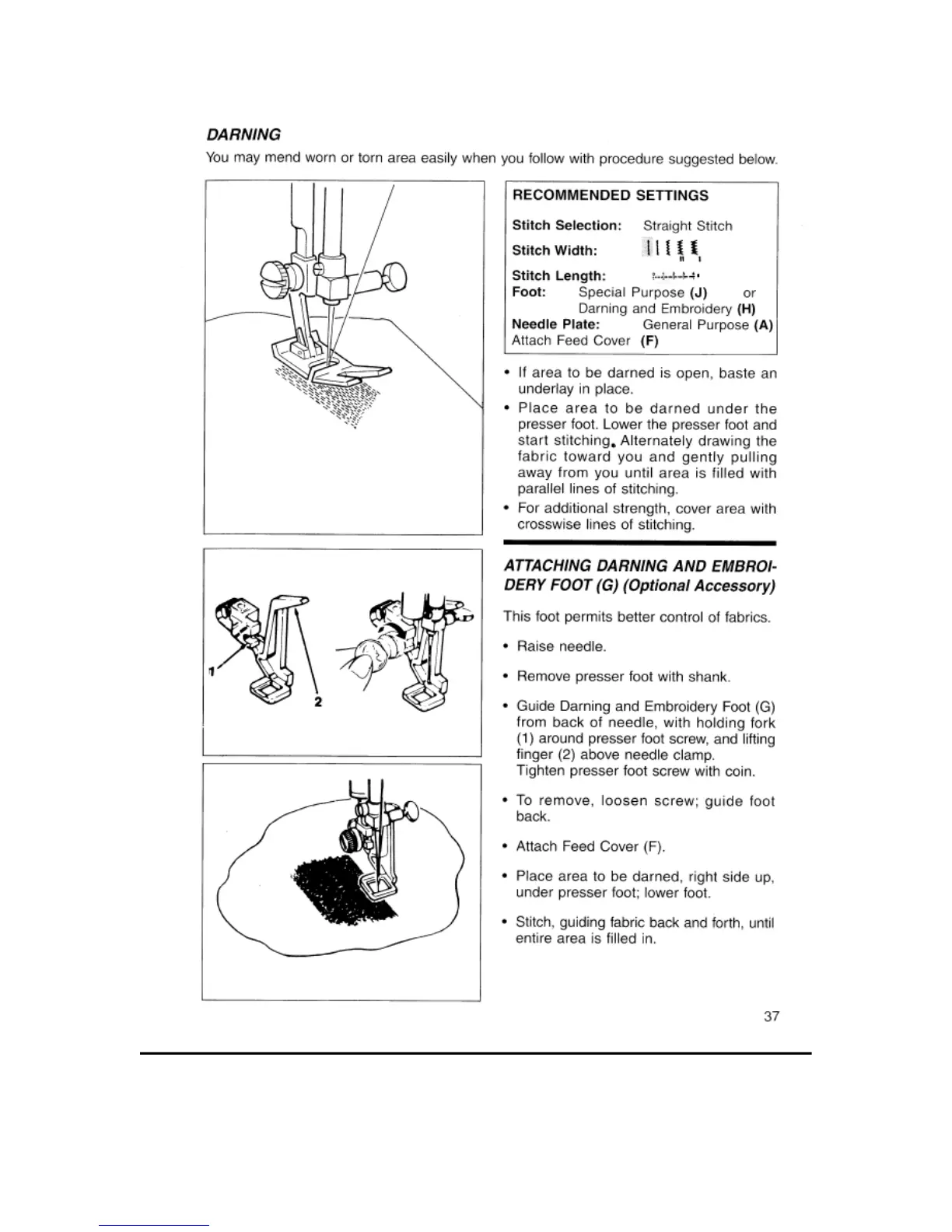 Singer 9432 - Darning; Attaching Darning and Embroidery Foot