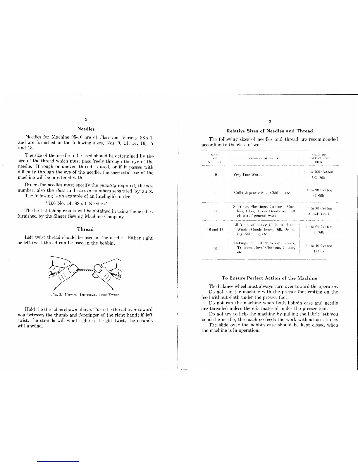 Singer 95-10 - Machine Components; Needles; Thread; To Ensure Perfect Action of the Machine