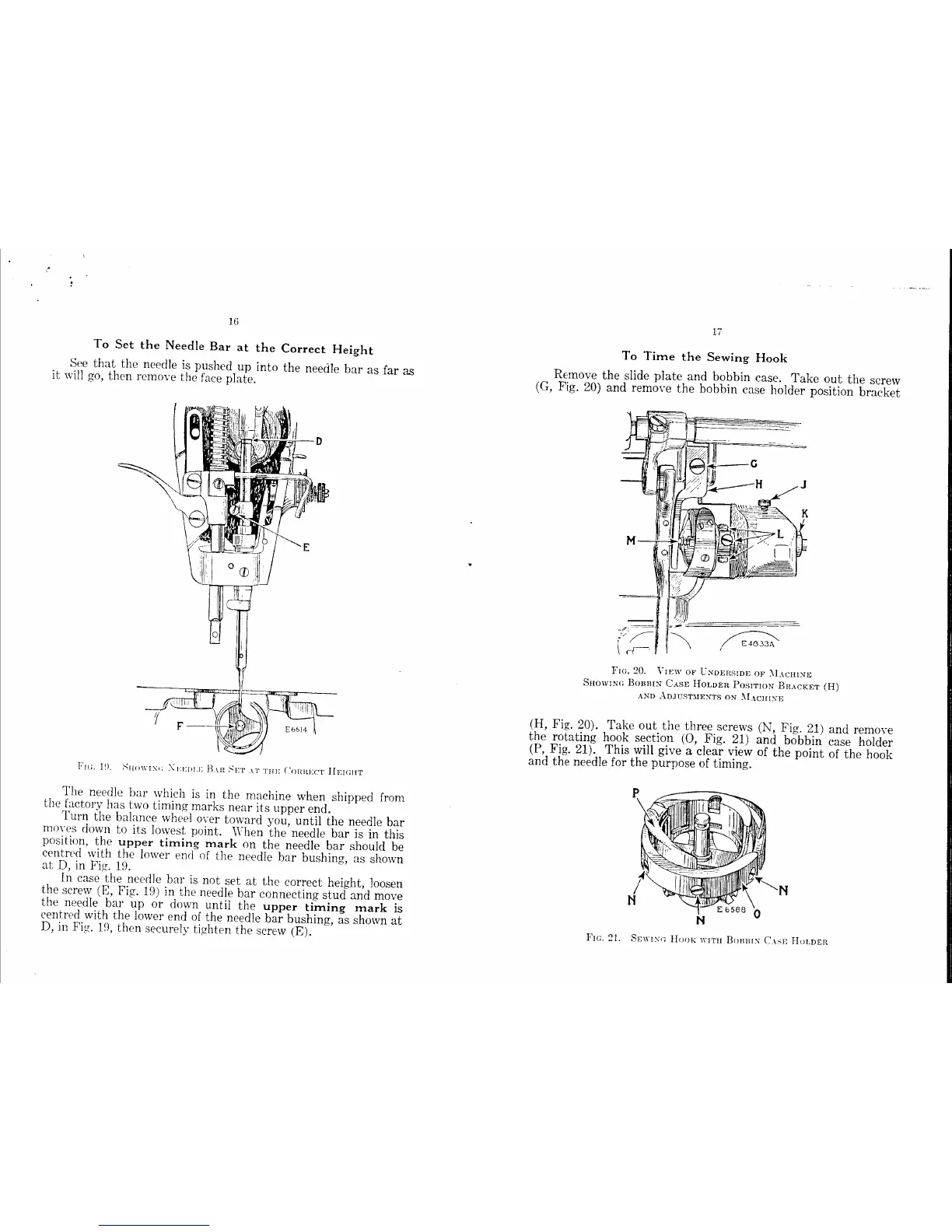 Singer 95-40 - Machine Timing and Setup; To Set the Needle Bar at the Correct Height; To Time the Sewing Hook