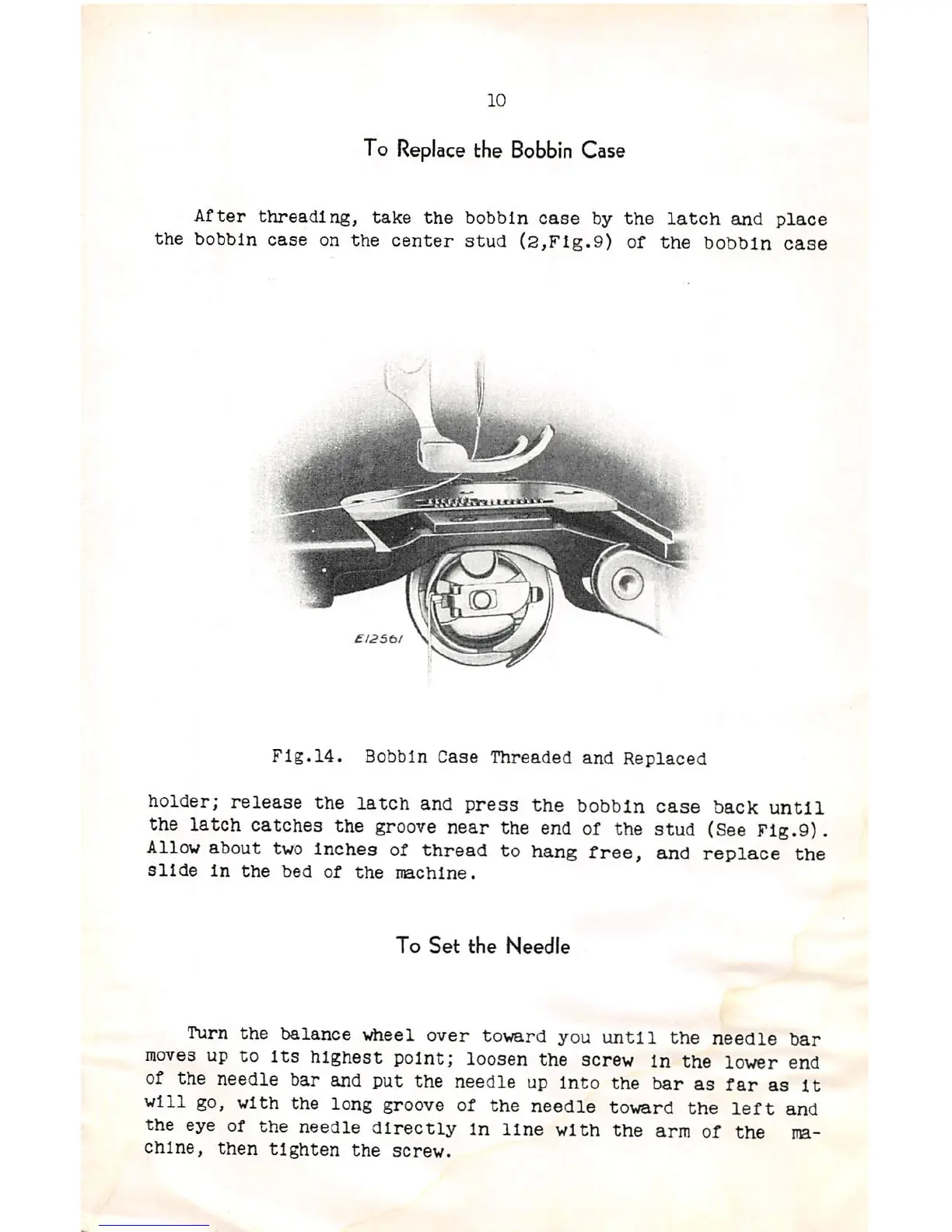 Singer 95-80 - Bobbin Case and Needle Setup; Procedure for Replacing the Bobbin Case; Procedure for Setting the Needle