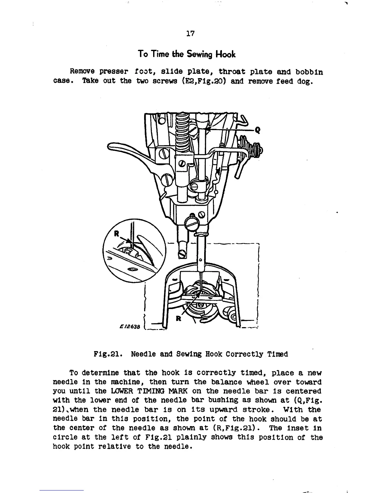 Singer 95-80 - Sewing Hook Timing; Procedure for Timing the Sewing Hook