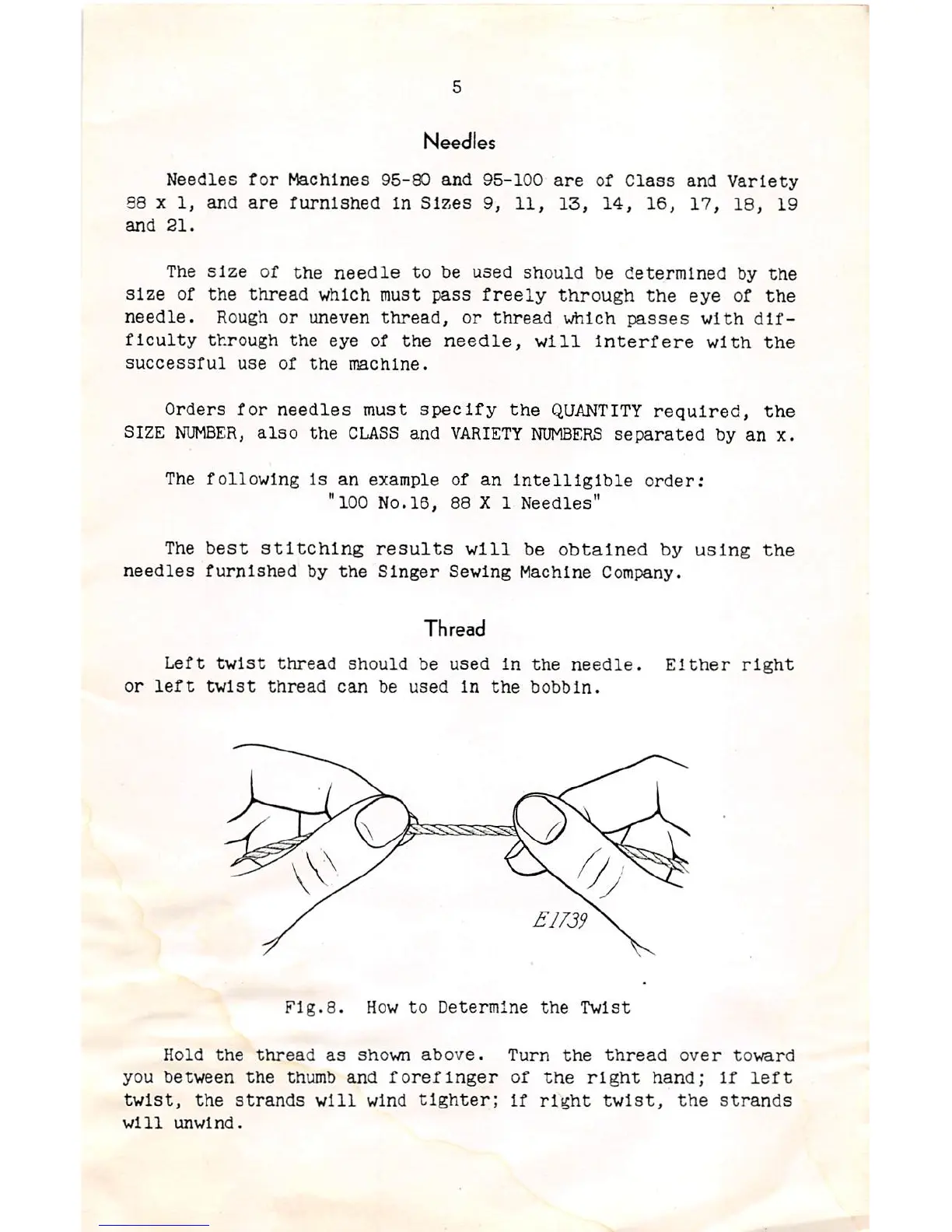 Singer 95-80 - Needles and Thread Selection; Needle Specifications and Ordering; Thread Selection and Twist Determination