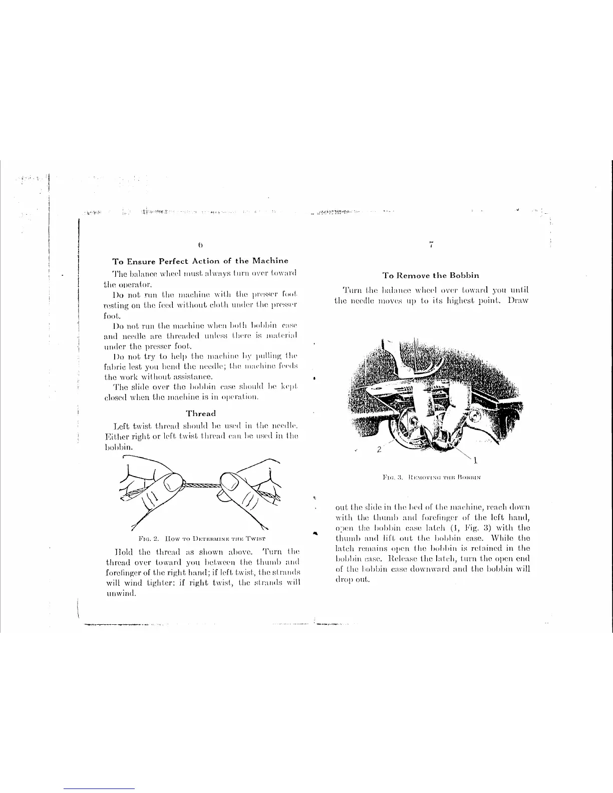Singer 96-10 - General Machine Operation Precautions; General Operating Precautions; Bobbin Removal Procedure; Removing the Bobbin