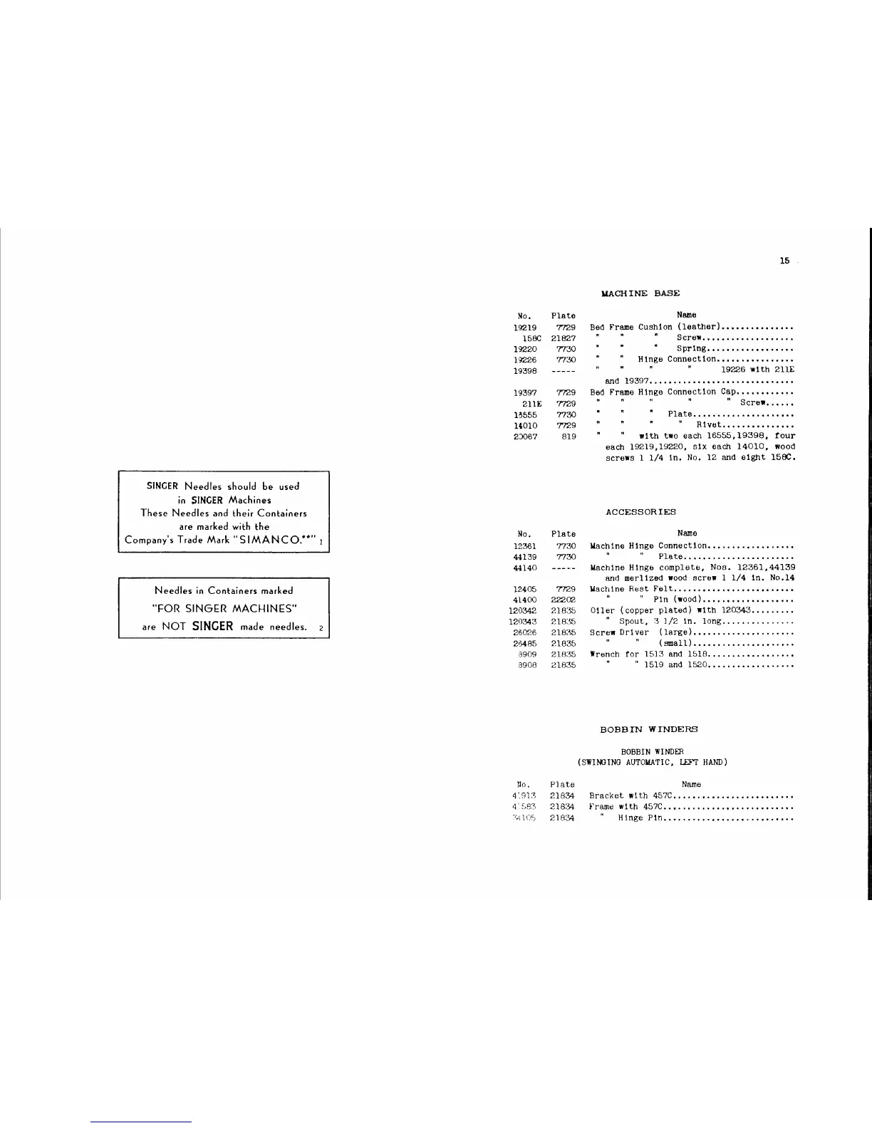 Singer 96-41 - Machine Base Components; Sewing Machine Accessories; Bobbin Winder Parts