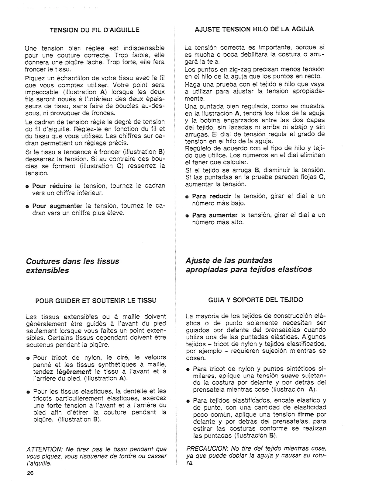 Singer 9606 - Adjusting Needle Thread Tension; Adjusting Stitches to Suit Stretch Fabrics; Guiding and Supporting Fabric