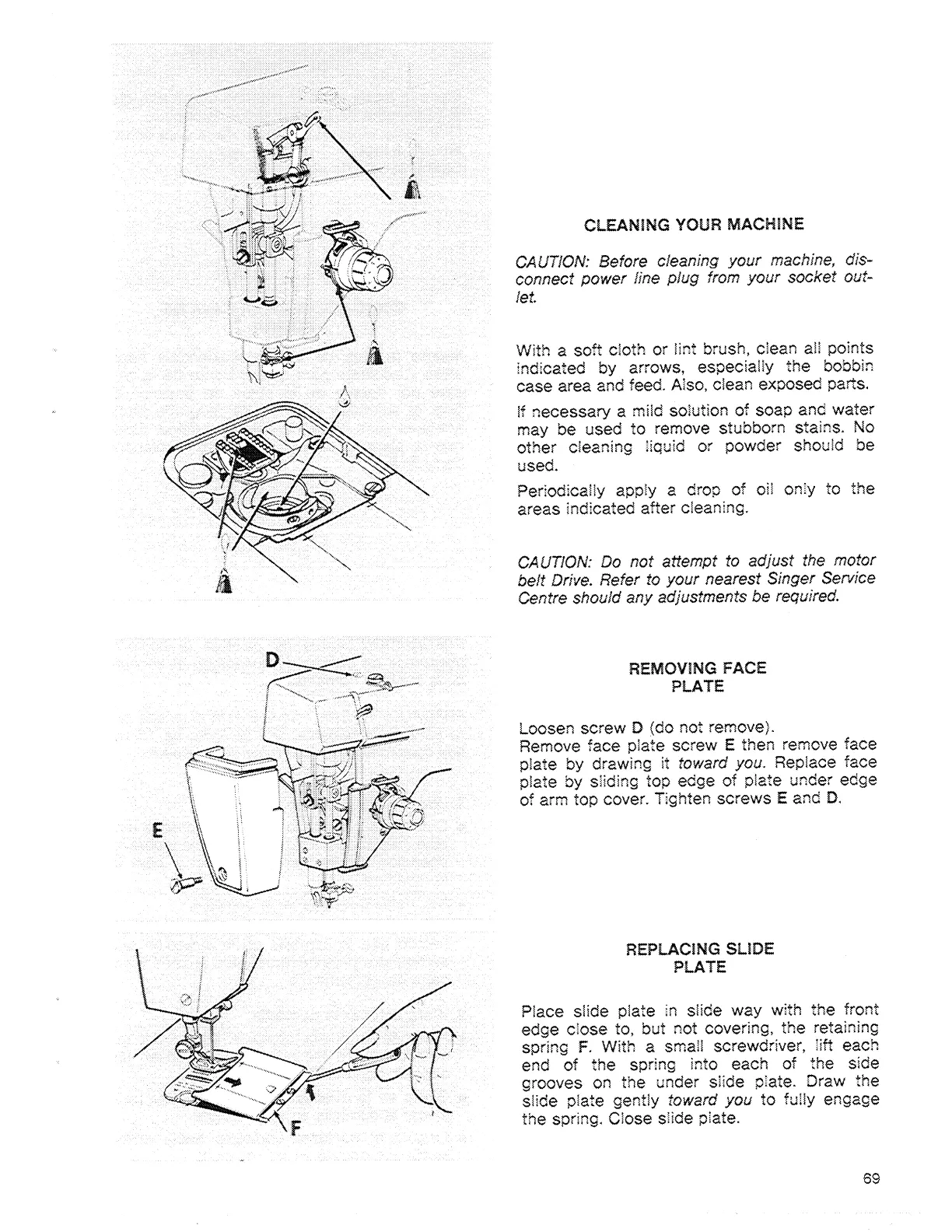 Singer 9606 - Cleaning Your Machine; Removing Face Plate; Replacing Slide Plate