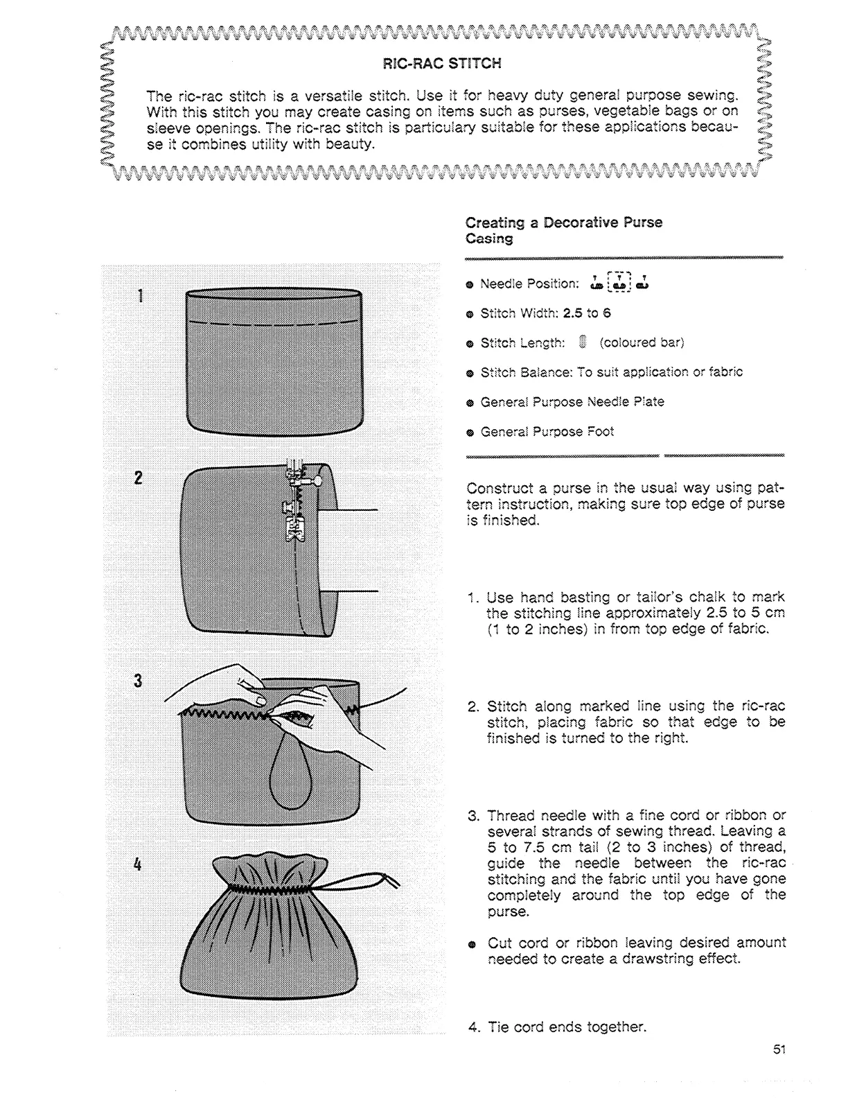 Singer 9608 - Ric-Rac Stitch; Creating a Decorative Purse Casing