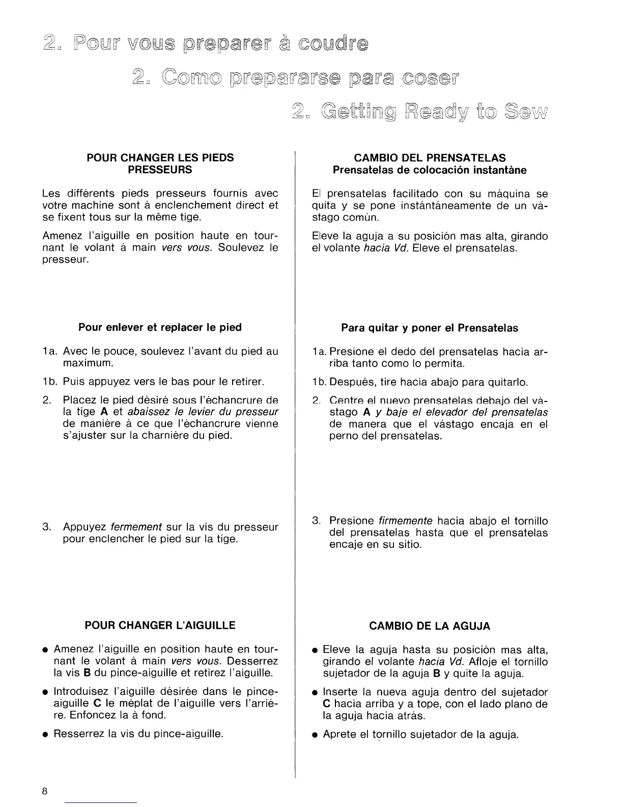Singer 9610 - Getting Ready to Sew; Changing Presser Feet; Changing the Needle