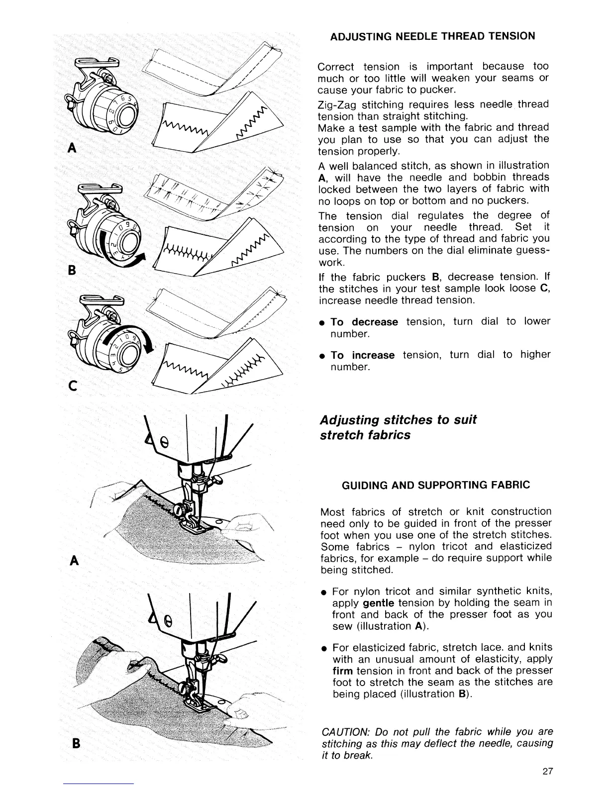 Singer 9610 - Adjusting Needle Thread Tension; Guiding and Supporting Fabric