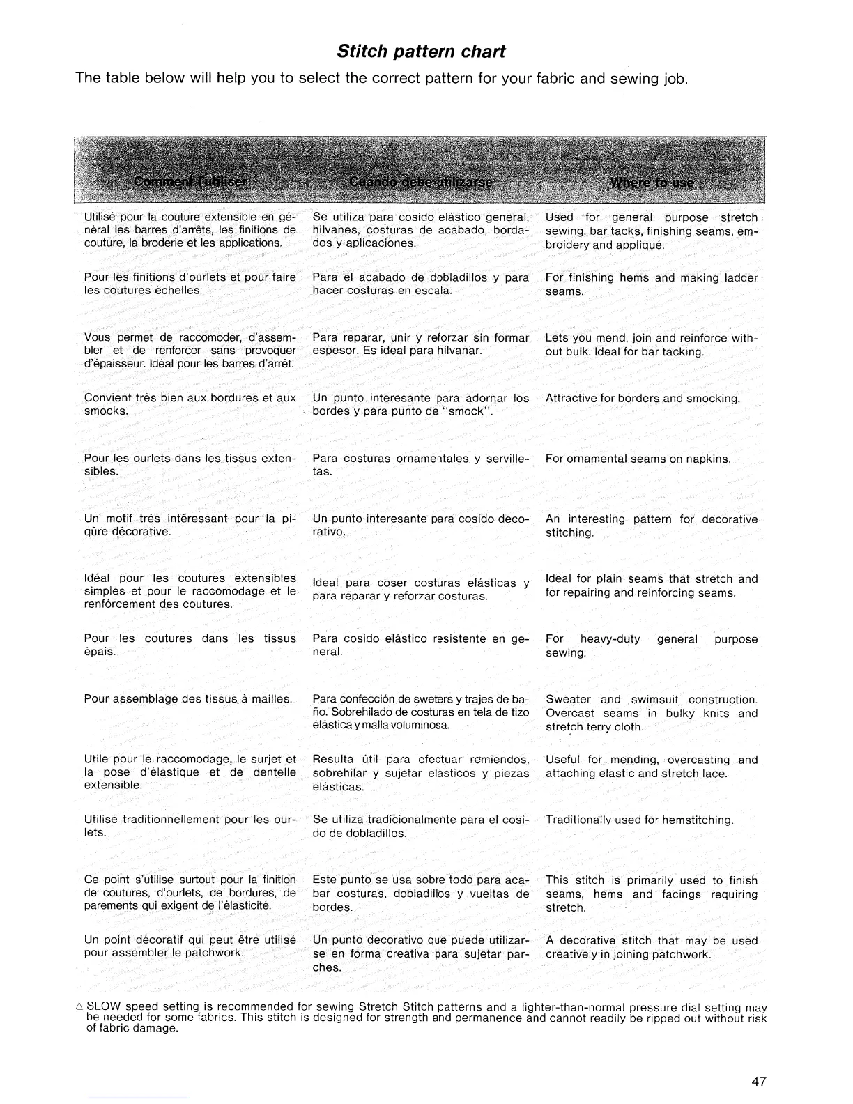 Singer 9610 - Using the Stitch Pattern Chart