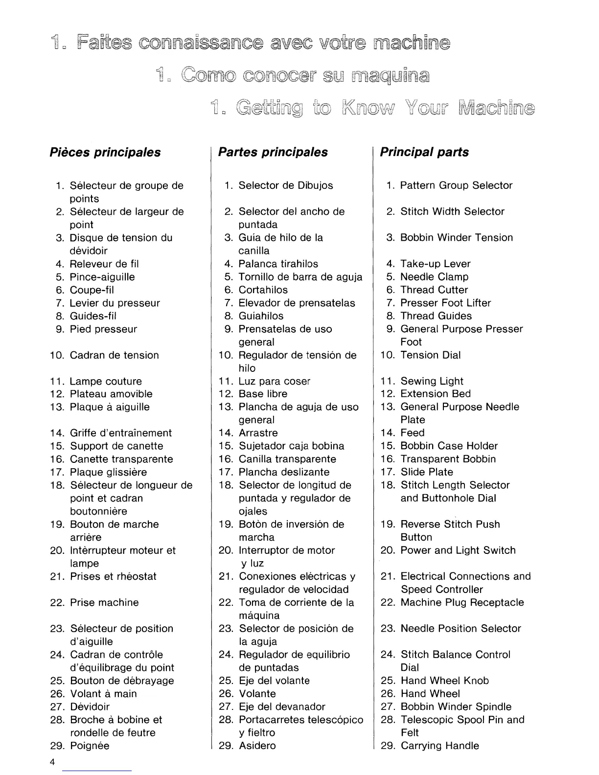 Singer 9610 - Getting to Know Your Machine; Principal Parts