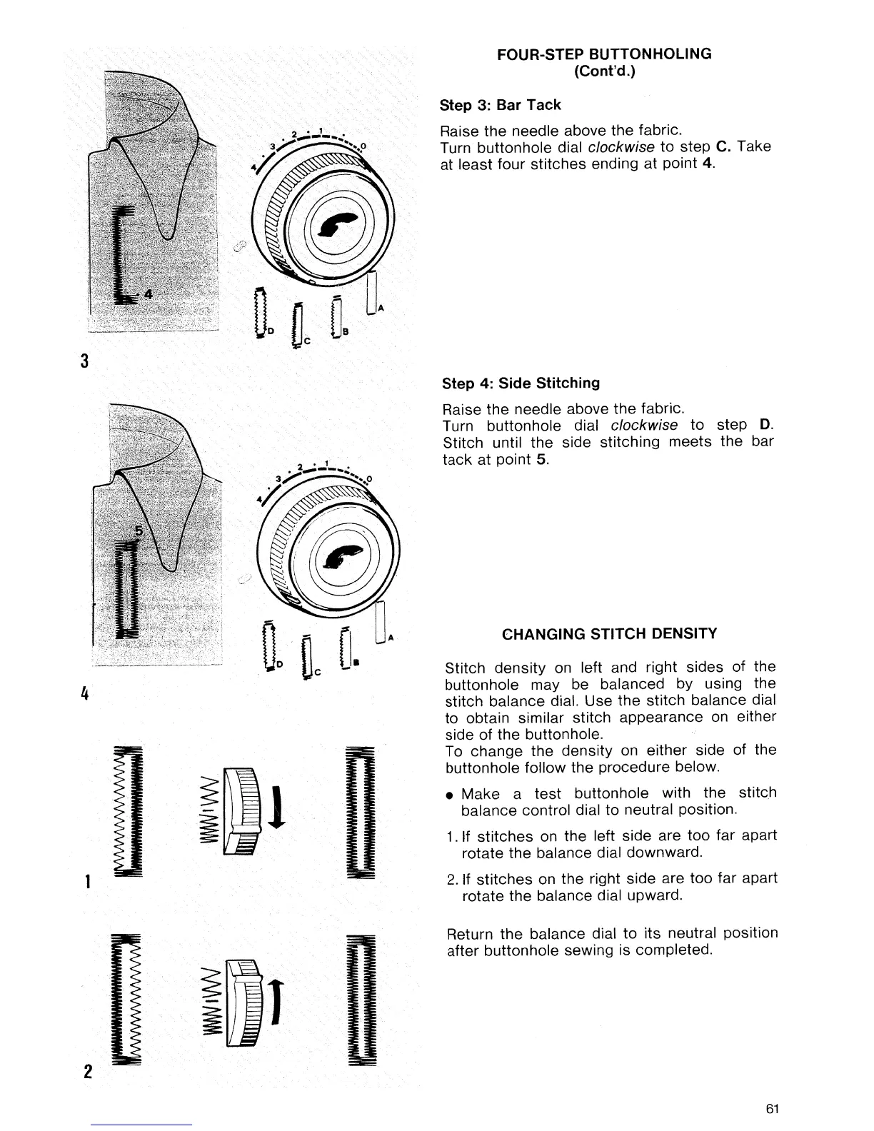 Singer 9610 - Four-Step Buttonholing (Contd.); Changing Stitch Density