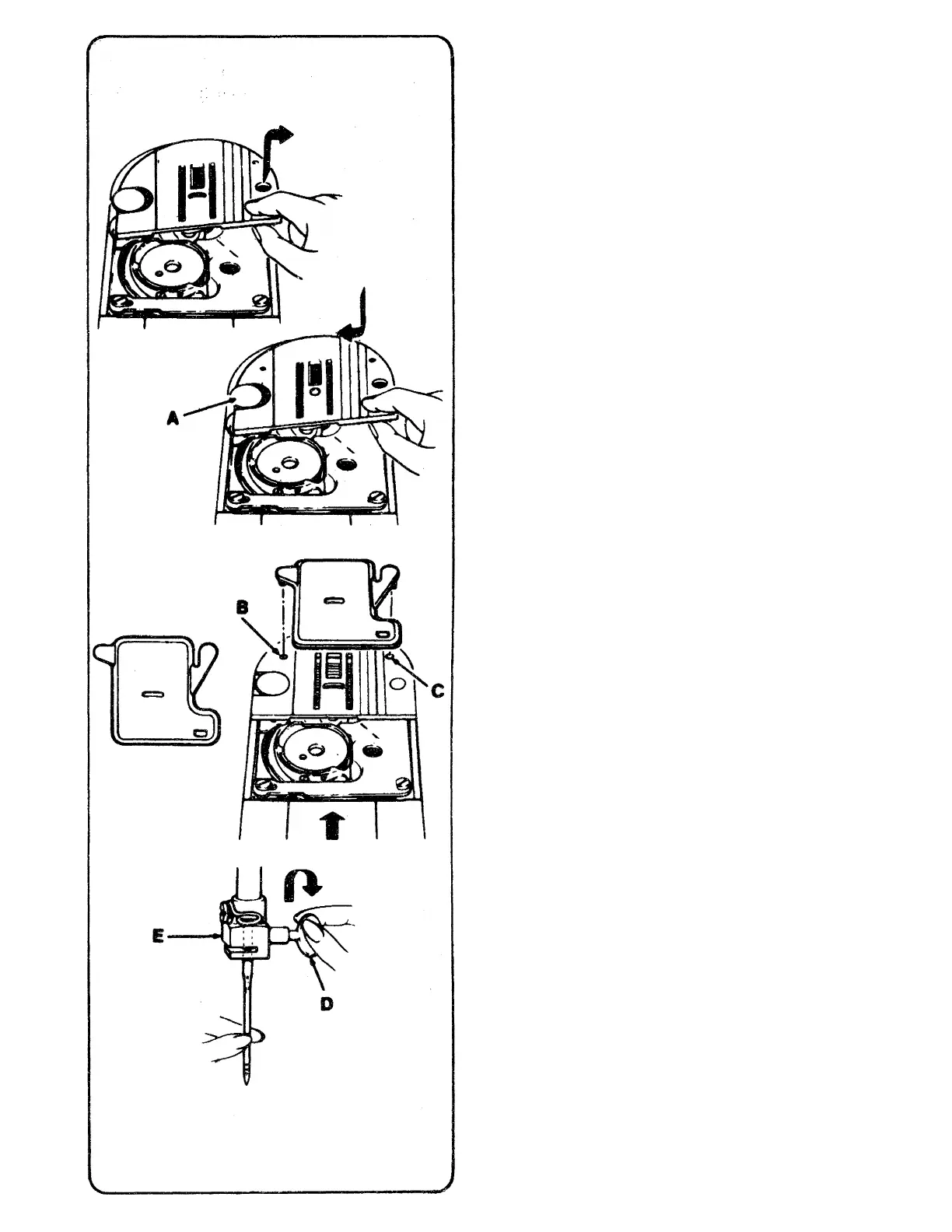 side of needle plate, lift it up and withdraw