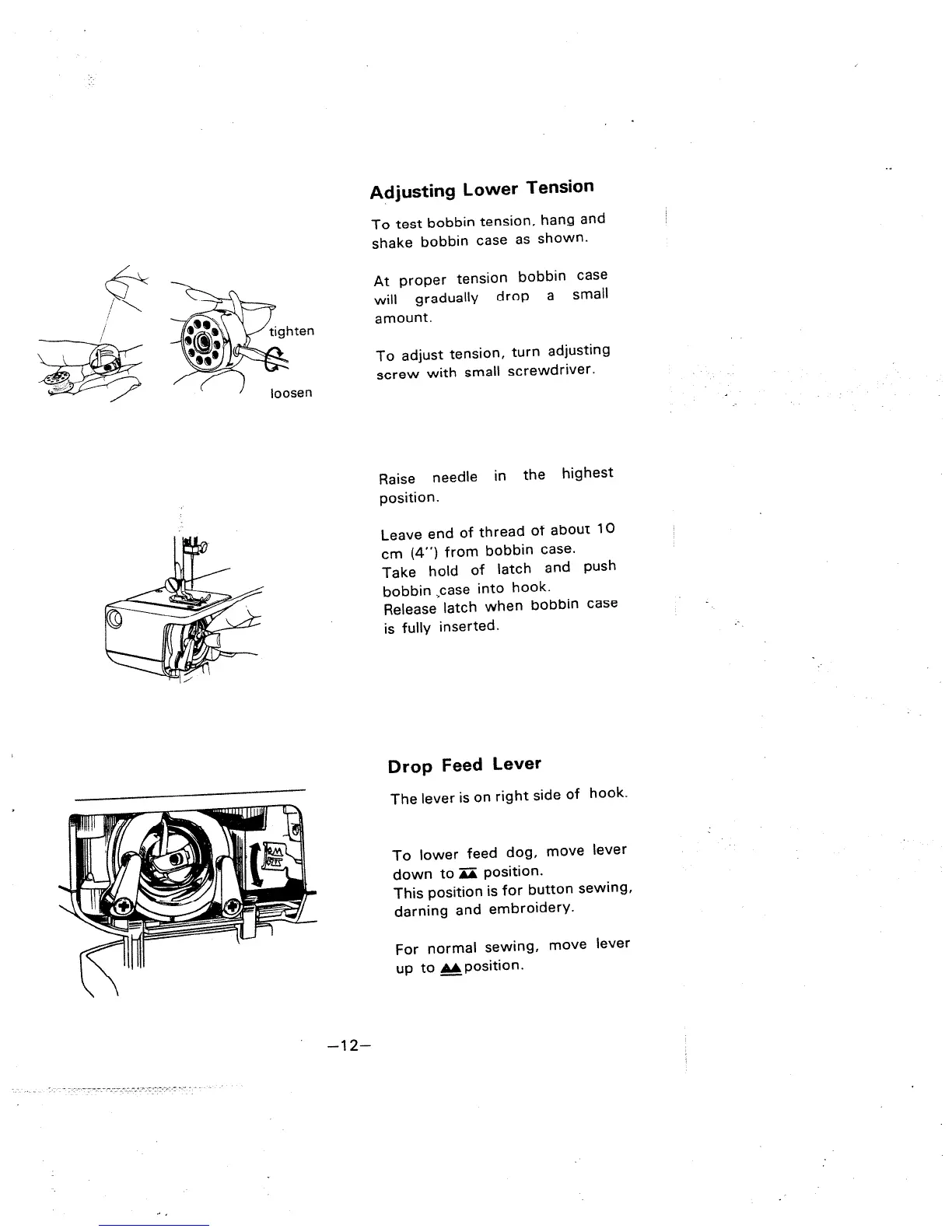 Singer 977 - Adjusting Lower Tension; Drop Feed Lever